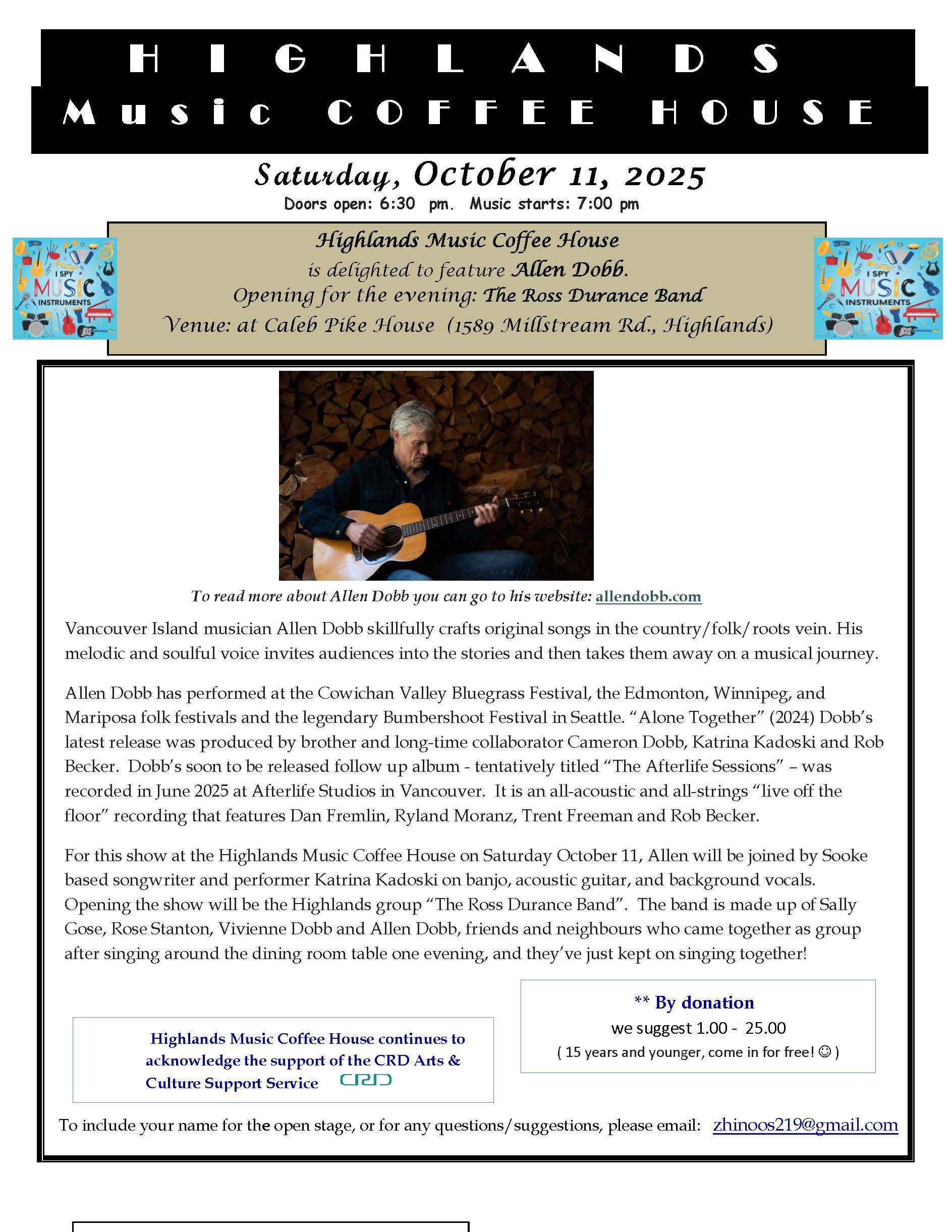 Time: Doors Open at 6:30 pm; Music starts at 7:00 pm